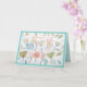 Parabéns, Cartão de Vidro de Flor de Aniversário. Flor e design de borboletas fantásticas com folhas e flores modernas delicadas. Coral, azul, beleza verde. Acento o interior do aqua. Personalize a mensagem no cartão com modelo fácil de usar.