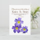 Adorável convite de casamento. Flores roxas no fundo branco, convite para casamento simples e elegante.