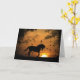 Um cartão memorial de cavalos, com um cavalo trotando num pôr do sol com aves e árvores. Com o tempo, que as memórias felizes substituam a tristeza da sua perda. Com profunda simpatia.