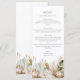 Este lindo cartão de cardápio de recepção de casamento tem lindos botânicos e tipografia elegante. Juntos, esses elementos criam um cardápio de casamento rústico, mas elegante, que seria perfeito para um casamento romântico em qualquer época do ano. Esta design coordena-se com a nossa bela suíte de casamento Boho Botânico. Veja a coleção para mais itens!