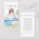 Um belo cartão de oração para dar à família e aos amigos como um guardião funerário. Design apresenta uma foto na frente destacada com uma borda de praia tropical aquarela. Adicione o nome, o texto personalizado, o poema ou a escritura favoritos da sua amada às costas para criar uma lembrança verdadeiramente única.