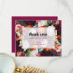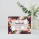 Um design elegante e rico de cartões de agradecimentos de casamento com uma mistura de lindas flores de verão em fundo magenta e tipografia preta personalizável em um fundo transparente branco e de fundo dourado. A linguagem das flores, conhecida como floriografia, atribui significados diferentes a vários tipos e cores das flores. Por exemplo, rosas representam amor; begônias simbolizam harmonia; dahlias significam compromisso; ranúnculo representa charme; e snapdragons significam graça.