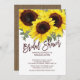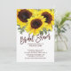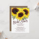 Chá de panela de outono contemporâneo, com girassóis amarelos brilhantes, sobre fundo branco, com uma pá-volta marrom.