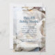 Convite de aniversário com fundo de conchas reais. O texto azul é adicionado sobre um painel transparente para mostrar uma coleção de células de mar abaixo. As conchas incluem um dólar branco de areia, ouriço-do-mar, relógio de sol, arcas e geleias em cores naturais. Perfeito para uma celebração marco para homens ou mulheres. As mesmas conchas de praia são apresentadas na parte de trás do papel, que vem com upgrades opcionais.