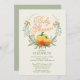 Chá de fraldas de outono moderno Convite com uma bela coroa verde de folhas de outono com duas abóboras e flores delicadas com tipografia moderna. Perfeito para um chá de fraldas para raparigas, chá de fraldas para rapazes ou chá de fraldas neutro em termos de gênero para um chá de fraldas no outono