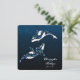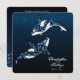 Belo Convite para Casamento de Baleias Orca com um fundo estrelado em tons de azul, branco e preto. Esta design é perfeita para casamentos temáticos de destino e praia.