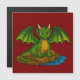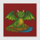 Belo dragão verde bordado sentado numa rocha. Por favor, note que não é um bordado, mas uma imagem de um dragão bordado.