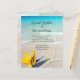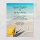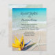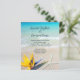 Convites de casamento lindos e tropicais em terra com estrelas e design floral. Água azul-aqua e imagem de areia lisa são o fundo do texto impresso de cinza escura. Uma papelaria simples e barato, mas adorável, com estrelas-do-mar e flor de pássaro-do-paraíso no fundo. Quer um design diferente? Por favor, entre em contato conosco e faremos isso para você! Nenhum envelope vem com estes convites.