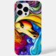 Belo cavalo Palomino com um homem colorido em um fundo irado de arco-íris. Uma capa de telefone de arte digital feita com software de renderização AI.