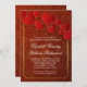 convite de festa de noivado personalizado com corações de amor vermelho e design floral de damasqueiro chic