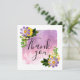 Esta é uma carta de "Obrigado" lindamente elaborada que exude calor e gratidão. A placa apresenta um fundo de aquarela roxo que adiciona um toque de elegância e sofisticação. No centro, as palavras "Obrigado" são graciosamente escritas numa letra cursiva, expressando uma apreciação sincera. O cartão é enfeitado com flores amarelas e roxas e folhas verdes, melhorando o seu encanto e atração. Além disso, a parte traseira da placa é totalmente personalizável, permitindo que você adicione um toque pessoal à sua mensagem de obrigados.