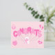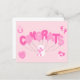 Celebre a alegria de uma nova chegada com esta adorável carta rosa de "Parabéns", perfeita para uma menina! Apresentando tons suaves pastéis, ícones doces para bebês e um design de balão lúdico, este cartão adiciona um toque sincero a chás de fraldas, visitas hospitalares ou comemorações de boas-vindas a casa. Um bem pensado que os novos pais vão gostar.