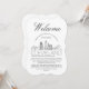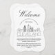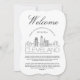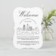 Um cartão de detalhes de hóspedes único, personalizado para os convidados do seu casamento que viajam para ver você na bela cidade de Cleveland, Ohio. Ele apresenta uma ilustração moderna em estilo deco da silhueta da cidade na frente, seguida por espaços para as informações do seu dia de casamento exclusivo no verso. Todos os elementos deste item estão desbloqueados e ajustáveis para atender às suas necessidades. Divirta-se tornando-o seu.