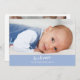 Cartão de anúncio de bebê simples e elegante com foto na frente e mensagem de boas-vindas com nome.