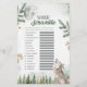 Bem-vindo ao Cartão de Chá de fraldas de Lobo da Floresta, Cartão de Jogos para Chás de fraldas da Aventura Florestal, Cartão de Jogos para Chás de fraldas do Word Scramble.