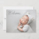 Um moderno, cheio frontal, design fotográfico com script de "Bem-vindo". Segunda foto no verso com modelos de texto. Precisa mover ou mudar a cor do texto na frente para corresponder à sua foto? Clique em Personalizar e, em seguida, em Editar usando a Ferramenta de Design para aprimorar ainda mais a sua. A cor no verso também pode ser alterada. Precisa de ajuda? Estou feliz em ajudá-lo. Envie-nos uma mensagem!