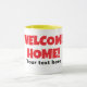 Bem-vindo ao presente personalizado de caneca de café. Faça sua própria xícara fofa para receber alguém de volta. Adicione seu próprio texto e cores personalizados.