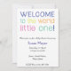 Um convite para chás de fraldas bonito em texto colorido com o bolinhas design no verso.