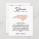 Uma das melhores maneiras de fazer seus convidados fora da cidade se sentirem especiais é uma carta de boas-vindas de casamento incluída em seus presentes de boas-vindas. Compartilhe uma mensagem de boas-vindas para seus convidados de casamento da CAROLINA do NORTE, bem como um itinerário ou calendário dos eventos do fim de semana. Frente mostra sua mensagem bem-vinda com um mapa da silhueta do estado DA CAROLINA DO NORTE com um dentro do coração. A combinação de tipos cursivos e serif contemporâneos torna este programa realmente excepcional. Todo estilo de texto, cores, tamanhos também podem ser modificados para ajustado das suas necessidades. ESTADO E COR DO CORAÇÃO SÃO EDITÁVEIS! Para obter ajuda ou solicitação personalizada (sem encargos), entre em contato conosco em citronelladesign@gmail.com ou visite nossa loja