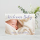 Apresente seu lindo novo bebê à família e amigos com este Cartão de Anúncio de Foto Benvindo Bebê em tons roxos e brancos. Concebido com a imagem e o texto do seu recém-nascido: Bem-vindo Bebê, juntamente com o seu Nome. Para personalizar, basta inserir a imagem do seu bebê usando o nosso modelo; clique em Preencher para cobrir a área. Em seguida, insira o nome do bebê e seus detalhes no modelo, substituindo a amostra. Amigos e familiares vão adorar este cartão de ponto de vista fotográfico.
