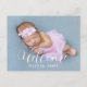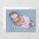 Bem-vindos, cartões postais de anúncio de nascimento de bebê com roteiro elegante na frente. Adicione facilmente sua foto personalizada e seu texto à frente e atrás do cartão.