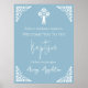 Bem-vindo Poster Floral Cross Christening Sky Blue