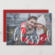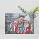 Cartão com fotos de férias moderno e impressionante com tipografia escrita à mão e fundo de neve vermelho e branco. Esta é uma parte de uma coleção de feriados, "Bênção no Script Whimsical". Itens correspondentes e outras cores estão disponíveis. Feliz Feriados!
