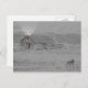 Foto de uma velha casa do Colorado e de um cavalo na neve com uma cruz iluminada e uma árvore na janela.