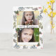 Este belo cartão de modelo fotograma é perfeito para as suas duas fotos. Deseje Feliz Natal e envie bênçãos com esta placa de água macia com um quadro de aparência dourada ao redor das bordas externas das fotos. Ramos de verde, sagrado, pinheiro e bagas adicionam um toque quente a este belo cartão de férias. Adicione seu nome ou nomes na parte inferior para um cartões de natal verdadeiramente pessoal.