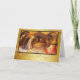 Este elegante cartão de Natal cristão apresenta uma cena de natividade. José, Mary, Jesus bebê, vacas, um mangueiro, - enquadrado em ouro (efeito)