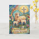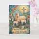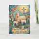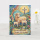 Este cartão doce de Páscoa apresenta uma pintura colorida de uma ovelha mãe com dois cordeiros aninhados perto, cercada por flores brilhantes de primavera com uma cruz erguendo-se suavemente ao fundo. A obra de arte captura calor, proteção e amor terno, tornando-se um belo símbolo do cuidado que Deus tem por quem você ama. Com “Bênçãos de Páscoa que Aquecem o Coração” na frente e uma mensagem interna sobre a proximidade confortante e a paz do Salvador, este cartão é perfeito para qualquer pessoa que precise de um lembrete gentil de que está segura nos braços Dele. É uma escolha ideal quando você deseja que sua saudação de Páscoa seja visualmente encantadora e profundamente encorajadora.