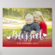 Bênçãos Feriadas | Poster de fotos de feriado - Vermelho. Elke Clarke © Outros estilos e cores disponíveis em www.zazzle.com/epclarke. Fonte de script branco com a palavra "abençoado" com design de sobreposição de fotos corações com efeito ombre vermelho. Uma maneira perfeita de mostrar a sua preciosa foto de família. Um presente de Natal que sua família e amigos vão gostar. presente de decoração de excelente para avós, tias e tios. Adicione uma bela moldura.
