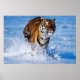 Apresentando um fôlego tendo em vista uma corrida de Tigre BengalaIng na bela água azul do oceano com manchas de água por todo o lado. esta é uma bela foto nesta poster