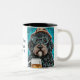 Bernedoodle segurando uma caneca de cerveja