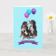 Uma foto fofa de cães da Montanha Bernesa desejando "Parabéns" e balões de fundo adiciona cores a esta bela carta.