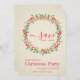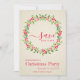 Na moda, coroa moderna de folhas verdes a aquarelas e bagas vermelhas em um fundo de listras de marfim pálidas com sua festa de Natal SAVE OS detalhes da DATA em letra chic. CORRESPONDENDO a itens na nossa loja.