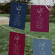 Ajude seus convidados a encontrar sua mesa com este elegante cartão moderno de assentos com nomes de convidados. Cartões duplos para que os hóspedes possam procurar os dois, frente ou verso pelos seus nomes. Espaço livre ao redor, dando-lhe a liberdade de usar clipes ou furos de perfuração para monitores suspensos, ou usar o suporte/quadro da mesa. Fundo Berry e texto branco. Detalhes da caligrafia escrita à mão. Várias opções de cores. Ter todos os números de tabela na mesma cor ou cores misturadas de acordo com o tema de cor do evento. Parte da nossa coleção "Berry, Blue and Burgundy Floral".