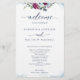 Elegante programa de Casamento com delicadas manchas azuis de aquarela e detalhes florais graciosos em cima em uma bela mistura de morango, burgundy, azul empoeirado e matizes marinhos. Elementos modernos de caligrafia escrita à mão. Capacidade de fazer alterações e ajustes de texto selecionando personalizar ainda mais. Frente com detalhes da cerimônia de casamento, volte com nomes de festa de casamento e obrigado que envie para seus convidados. Sentimento moderno elegante. Parte da nossa coleção "Berry, Blue and Burgundy Floral" com vários produtos de coordenação disponíveis.