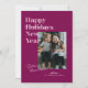 Não se aproximou de enviar seus cartões de Natal a tempo? Este cartão de Ano Novo já cobriu. Este framboesa festivo e cor-de-rosa contém a menção "Felizes Feriados", com feriados cruzados e Ano Novo, escrito abaixo. Tem espaço para uma foto de solteiro na frente e mais duas fotos na parte de trás. Nunca é tarde demais para enviar um pouco de amor e alegria de férias.