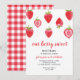 Um convite de festas de aniversário fofo para a sua festa de aniversário. Apresentando uma bonito ilustração de morangos a cores aquáticas - você pode personalizar o texto com seus detalhes!