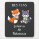 Este humorístico bocal tem dois animais adoráveis (uma raposa e um gato) bebendo dois chás Boba com a frase Bes Teas, uma peça sobre besties. Este bocal é excelente de Boba ou amantes de chá de bolhas, melhores amigos, pessoas com senso de humor, e aqueles que só querem se divertir. Isso pode ser personalizado com dois nomes - você e seu melhor amigo! Peça um para você e um para eles.