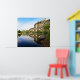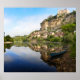 Poster impressão do castelo e da aldeia de Beynac-et-Cazenac construída sobre os penhascos ao lado do rio Dordogne, no início da manhã, com reflexo no rio e um caiaque no primeiro plano. A cidade está situada no perigor, na França. decoração de excelente na sua parede!