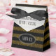 Tiras simples e grossas em preto e um padrão de ouro brilhante. Com uma camisa branca (frente) e lugar para sua personalização. Tema de cor: Preto e Dourado. Essa versátil caixa de favoritos pode ser facilmente personalizada aqui para se adequar a QUALQUER evento, exemplos: lembranças formais para os participantes levarem para casa, para convidados de casamento, bolsa de Festa de aniversário, essências de Chá de panela e mais. As empresas também podem preenchê-los com amostras e/ou cupons de desconto e dá-los a clientes especiais, vencedores de suas competições de promocional e prêmios. Como minhas designs e Arte?