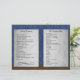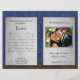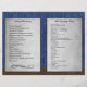 Bi Fold Denim Western Wedding Ceremony Programs — personalize estes programas de casamento com uma foto da próxima noiva e noiva. Seus hóspedes vão ter uma manutenção da sua cerimônia de casamento. Tudo que você tem que fazer é dobrá-los ao meio. O design apresenta um fundo denim impresso com caixas de texto de vintage de cinza prateada em um design semelhante a papel pergaminho. A parte inferior da dentro e do exterior também apresenta uma banda de couro marrom impressa para adição de decoração. O verso apresenta a famosa citação bíblica, "O amor é o paciente" em texto na moda. O dentro apresenta um design de espiral na parte inferior da "Ordem da Cerimônia" que você pode remover se for necessário mais espaço na área da caixa de texto. Consulte dicas para personalizar abaixo. Instruções para personalizar sua foto À direita da demonstração do programa de casamento, clique em "mudar" abaixo do ícone de foto de demonstração do casal. Carregue a sua fotografia a partir do computador. Se a foto não estiver alinhada corretamente dentro da área de fotos ao seu gosto, clique no botão laranja "personalizar" abaixo da demonstração do programa. Clique na guia "design" acima da demonstração. Coloque o mouse sobre a área de fotos— Zazzle destacará sua foto com uma linha pontilhada—clique na tela para selecionar sua foto. Agora arraste sua foto até o ajustado na área de fotos mantendo pressionado o botão do mouse. Solte o botão do mouse quando estiver satisfeito com a colocação. Clique na guia "produto" na parte superior da demonstração da placa. Em seguida, clique na guia Lente de aumento na parte superior para obter uma prova instantânea e ampliada do seu cartão para que você possa ver os resultados. Se ainda precisar ajustar a posição, repita os passos acima para forçar a foto até que esteja satisfeito. NOTA: se você receber um erro que diz, "Use caracteres latinos somente no seu texto", ignore-o e continue com suas alterações personalizadas.