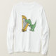 Dinossauro divertido do t-rex dos desenhos animados que joga o design da camisa ou da camisola da harpa. Bonito e divertimento e cheio da personalidade. Pode igualmente adicionar o texto feito sob encomenda ao pedir. Grande ideia do presente.