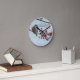 Relógio de parede redonda com o verso bíblia Matt 10:29 em um fundo azul claro com uma foto de um pássaro em um galho florescente. Faz um presente perfeito para um amigo cristão.