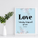 Citação de Bíblia decorativa com listras decentes em um fundo azul e letra manuscrita. Nota importante: O quadro na imagem promovida não está incluído.