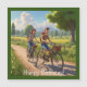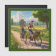 Este cartão de aniversário magnético apresenta pessoas que desfrutam de uma bicicleta no país.