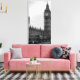 Tela impressa em preto e branco da icônica torre de relógio Big Ben e táxis pretos no centro da cidade de Londres, capital da Inglaterra. decoração de excelente na sua parede!