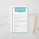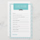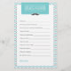 Este Cartão de Desejo para Bebê é uma atividade divertida e de manutenção para qualquer Chá de fraldas. Num esquema de cores para cinzas e turquesas, apresenta uma ilustração do bigode. A adição perfeita a um Chá de fraldas temático "Homem Pequeno"! Encontre outros jogos e itens correspondentes em www.zazzle.com/mypartydesign